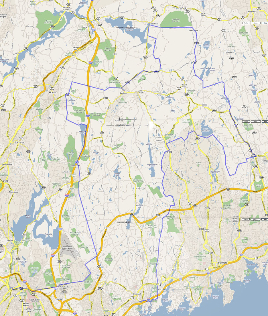 Leave from the White Plains train station and head up the Westchester/Fairfield county line. Hardpack into Bedford Village, then on through Ward Pound Ridge Reservation. Rollercoaster through the East Woods of Pound Ridge, then scream down Oanoke Ridge for lunch in New Canaan. On through North Stamford and down to Greenwich to finish. Train it back to NYCC; Bring your MNRR pass. Did we mention it's hilly?
